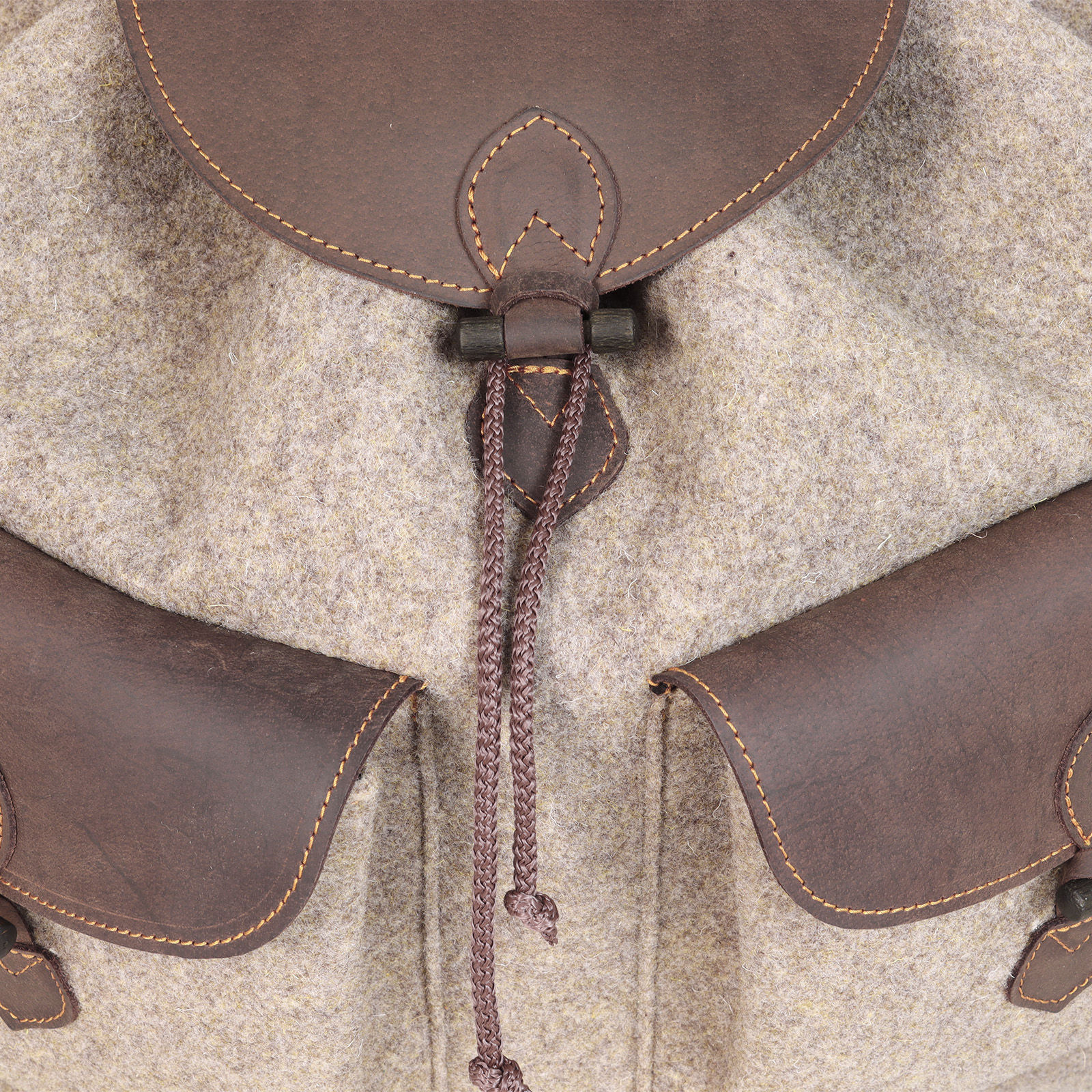 Mit seiner großzügigen Größe bietet der Rucksack ausreichend Platz für Ausrüstung und persönliche Gegenstände, ohne dabei an Funktionalität oder Komfort einzubüßen. Der Wollfilz-Rucksack verbindet traditionelle Materialien mit moderner Verarbeitung und ist damit ein zuverlässiger Begleiter für unterschiedlichste Einsatzzwecke.