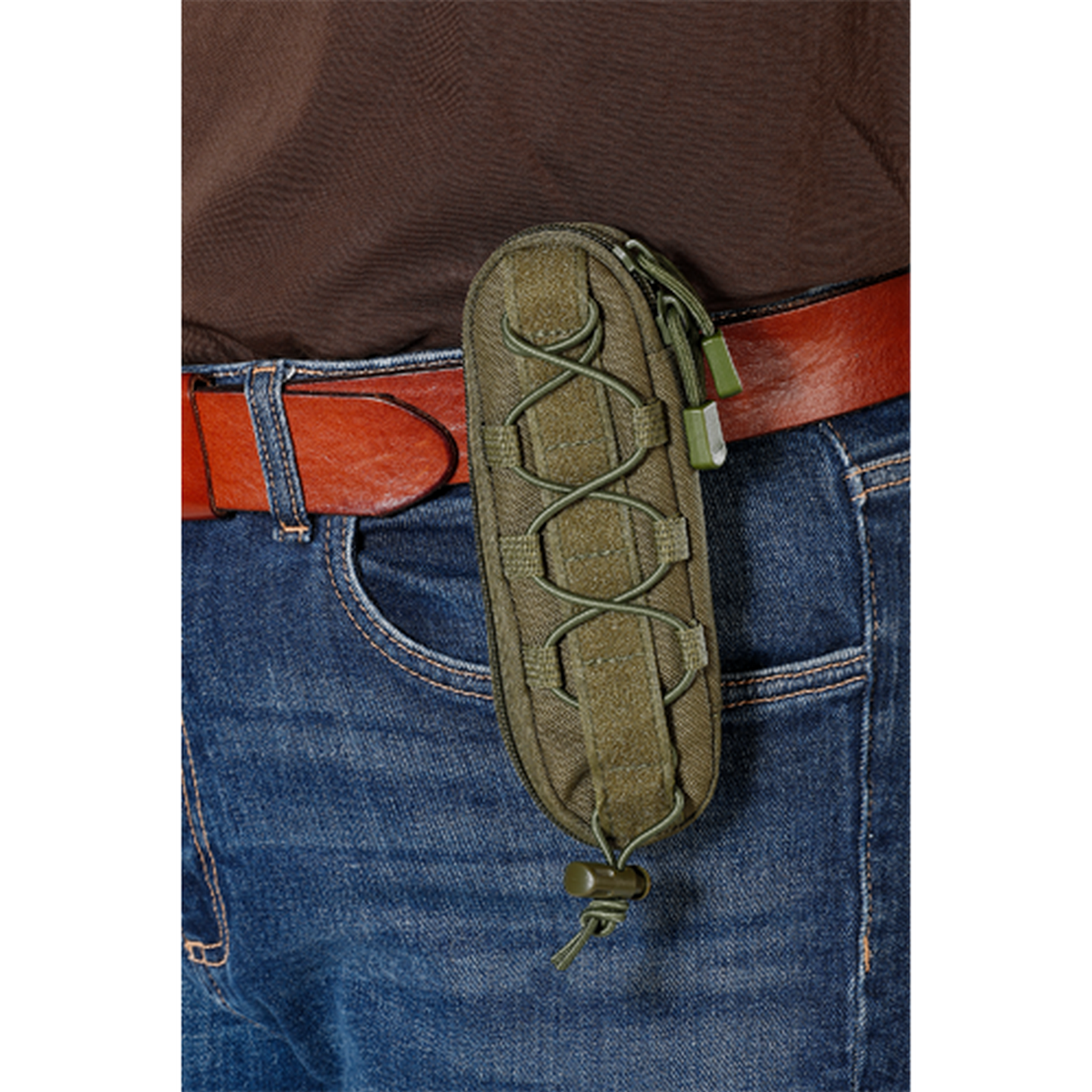 Dank ihrer handlichen Größe von 18 x 5,5 cm ist sie besonders praktisch für mittelgroße Messer und nimmt im Rucksack oder an der Ausrüstung kaum Platz ein. Der integrierte Gürtelschlaufe auf der Rückseite erlaubt eine unkomplizierte Befestigung an Gürtel oder Ausrüstung, was sie zum perfekten Begleiter im Gelände macht. Die Tasche ist formstabil und bietet ausreichend Platz, ohne unnötig aufzutragen.