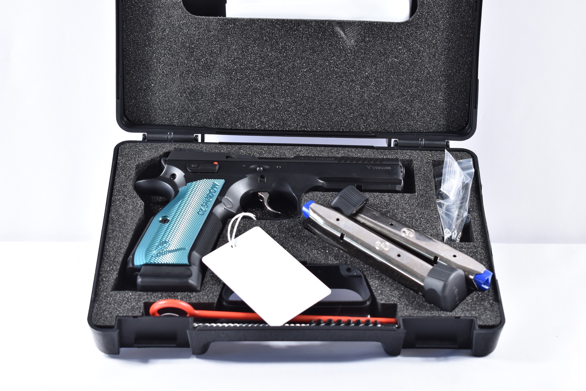 Lieferumfang Pistole, zwei Magazine, Reinigungsset, Bedienungsanleitung, Transportkoffer