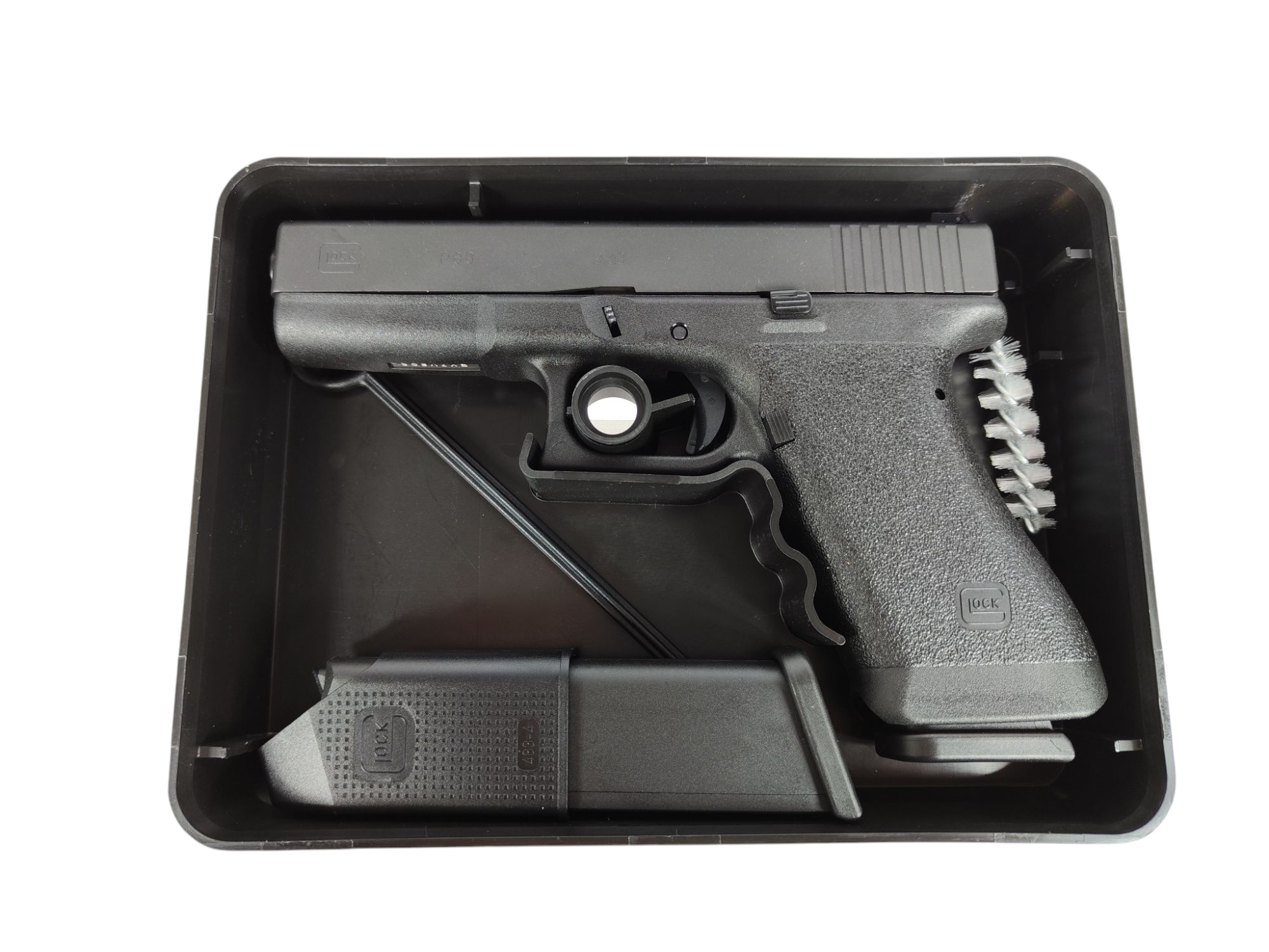 GLOCK P80 in Sammlerbox, kleines Putz-Set, 2 Magazine, Speedloader/Magazinladehilfe, Handbuch, Echtheitszertifikat