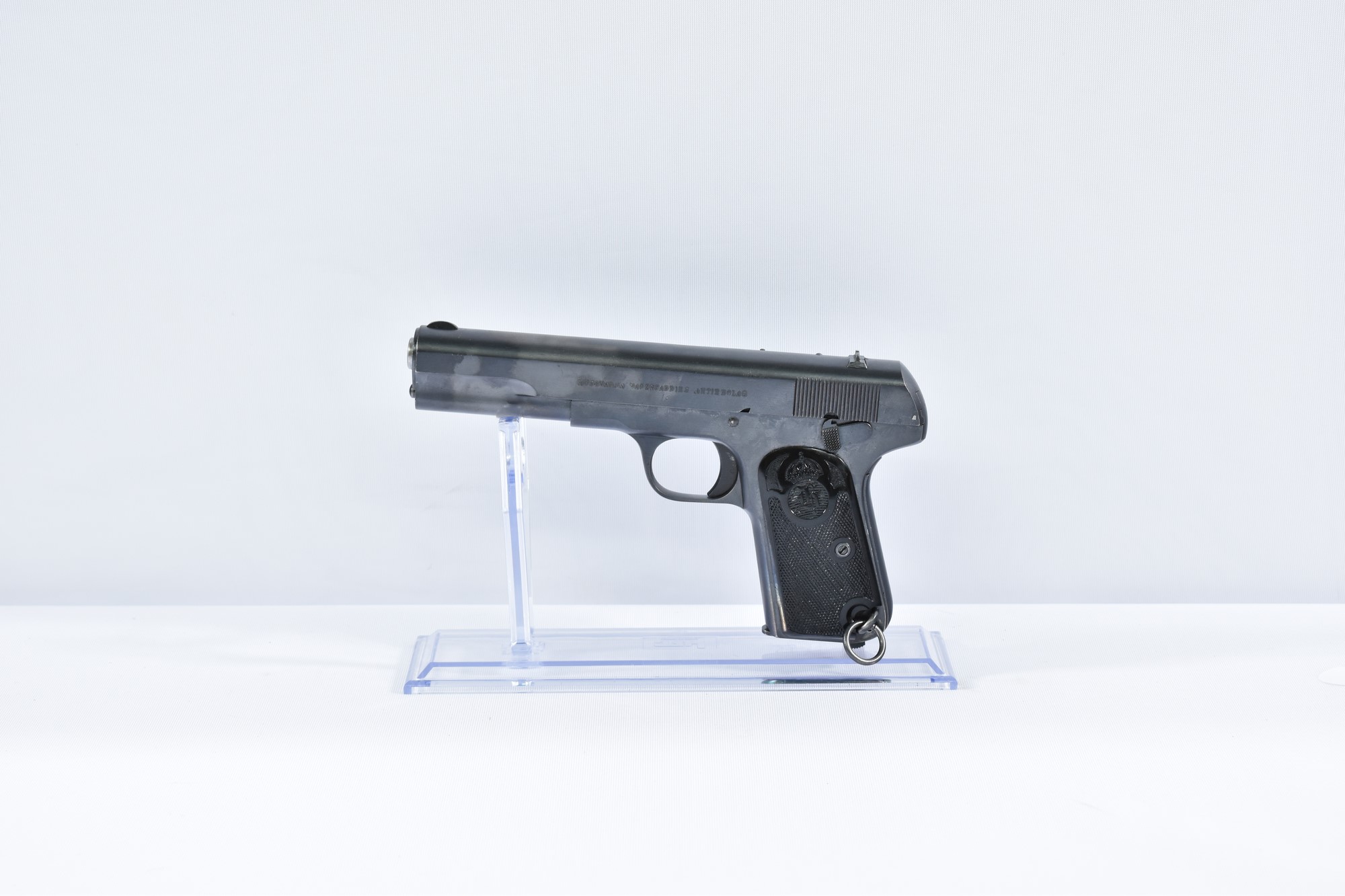 Diese Husqvarna Pistole im Kaliber 9mm Browning Long hat eine Gesamtlänge von 20,5 cm und eine Lauflänge von 12,7 cm. Sie wiegt 0,89 kg und befindet sich im Zustand 1, was bedeutet, dass sie wie neu ist. Die halbautomatische Pistole hat keine gültigen Beschuss und ist als Husqvarna Modell 1907 beschriftet.