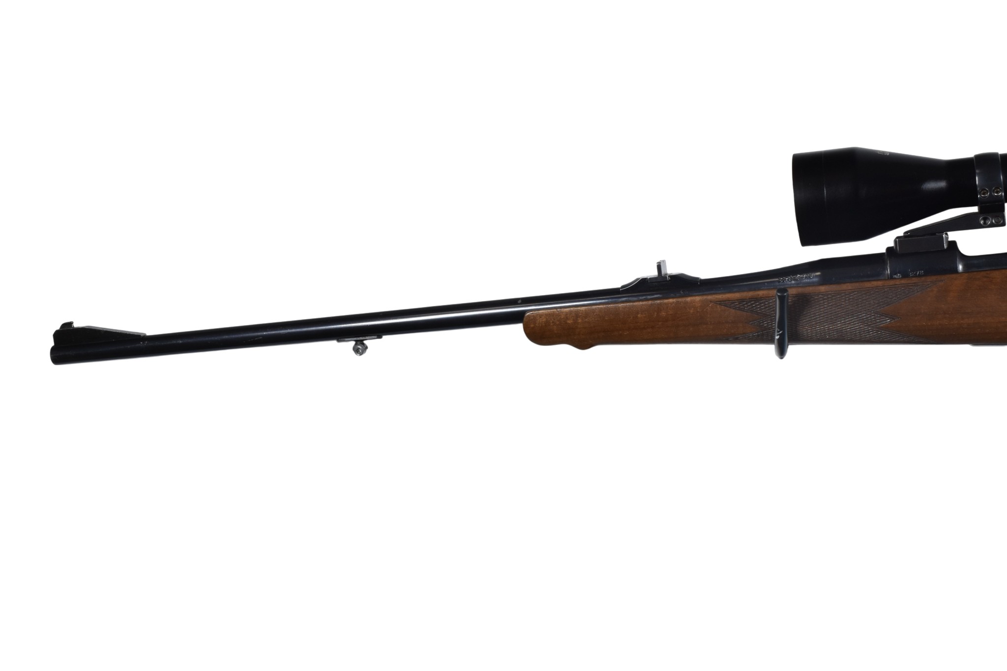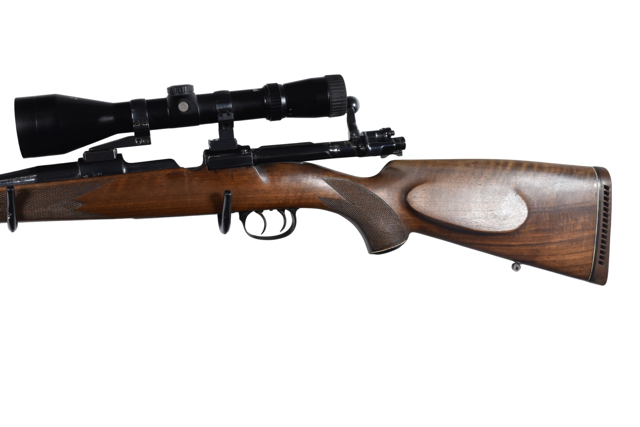 Diese Repetierbüchse mit System 98 im Kaliber .308 Winchester hat eine Gesamtlänge von 135 cm, eine Lauflänge von 62,5 cm und eine Schaftlänge von 37,5 cm. Der Zustand wird mit z2 angegeben, was auf normale Gebrauchsspuren hinweist. Dazu zählen leichte bis mittelstarke Dellen am Schaft sowie kleinere Kratzer an der Brünierung. Diese Zustandseinschätzung dient als allgemeine Orientierung einzelne Abweichungen oder stärkere Nutzungsspuren können dennoch vorhanden sein. Die Büchse ist mit einem Steiner Hunting Z Zielfernrohr in 3,5-10×50 mit Absehen 1 ausgestattet. Zusätzlich verfügt sie über einen deutschen Stecher für feinfühliges Abzugsverhalten.