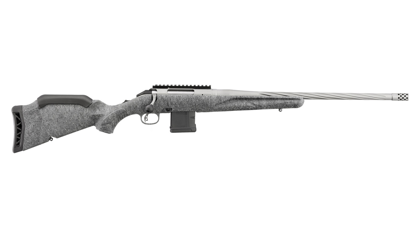 Der Schaft zeigt sich in einem dunklen Grau mit schwarzer und grauer Sprenkelung, die nicht nur optisch hervorsticht, sondern auch für hervorragenden Grip und Kontrolle unter unterschiedlichsten Bedingungen sorgt. Das Spiral-Fluting des 20-Zoll-Laufs reduziert das Gewicht und verbessert gleichzeitig die Kühlung und Steifigkeit ideal für präzises Schießen auch über längere Distanzen.