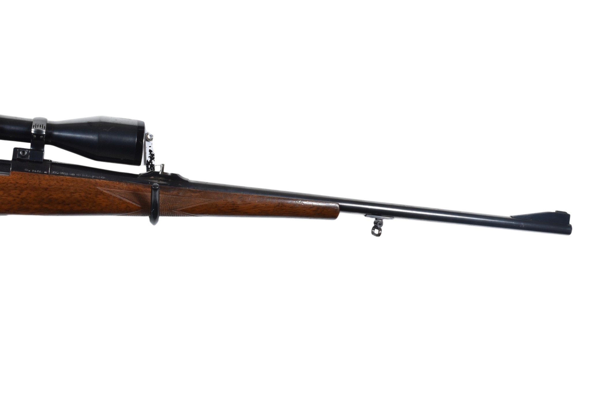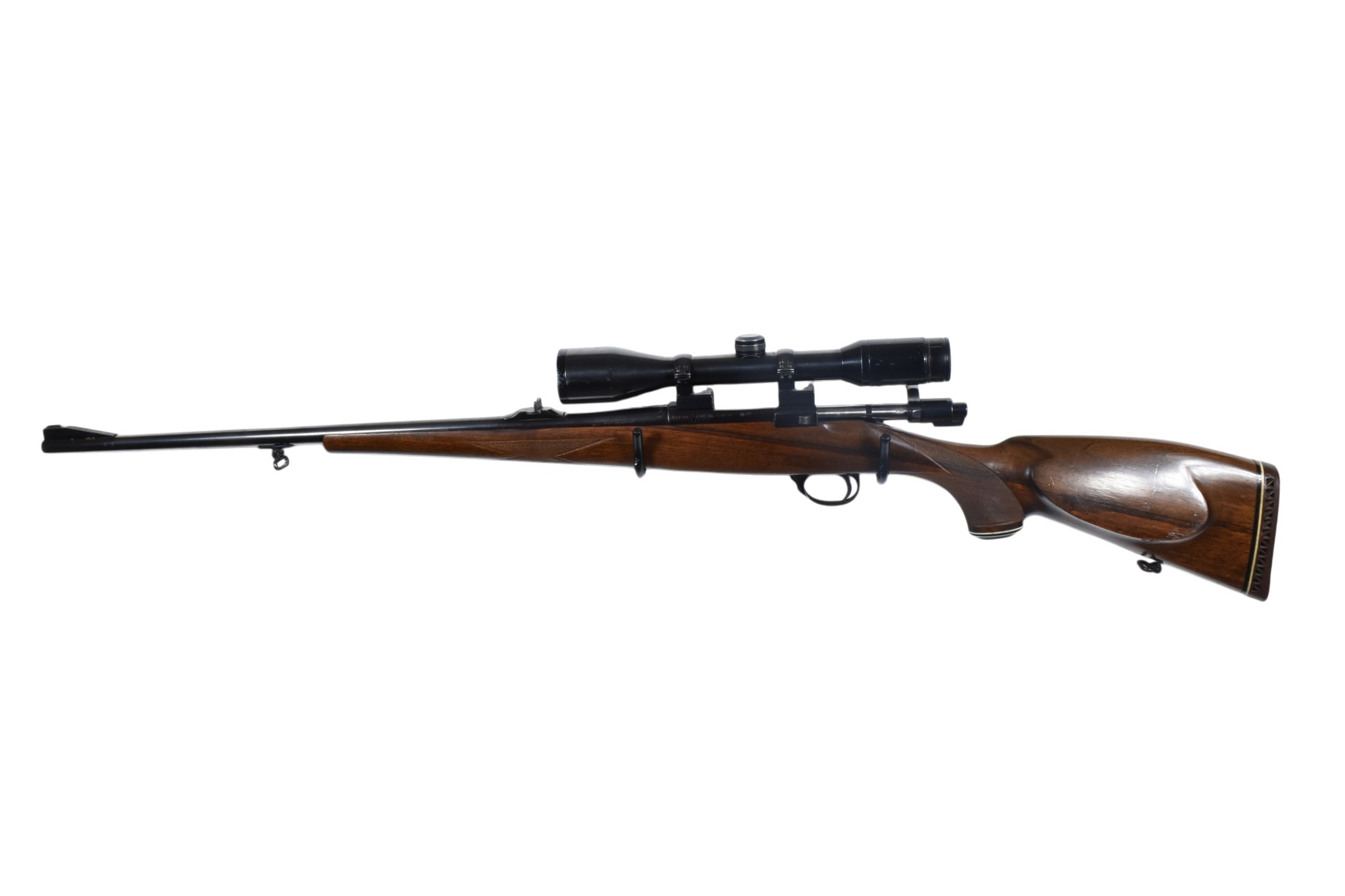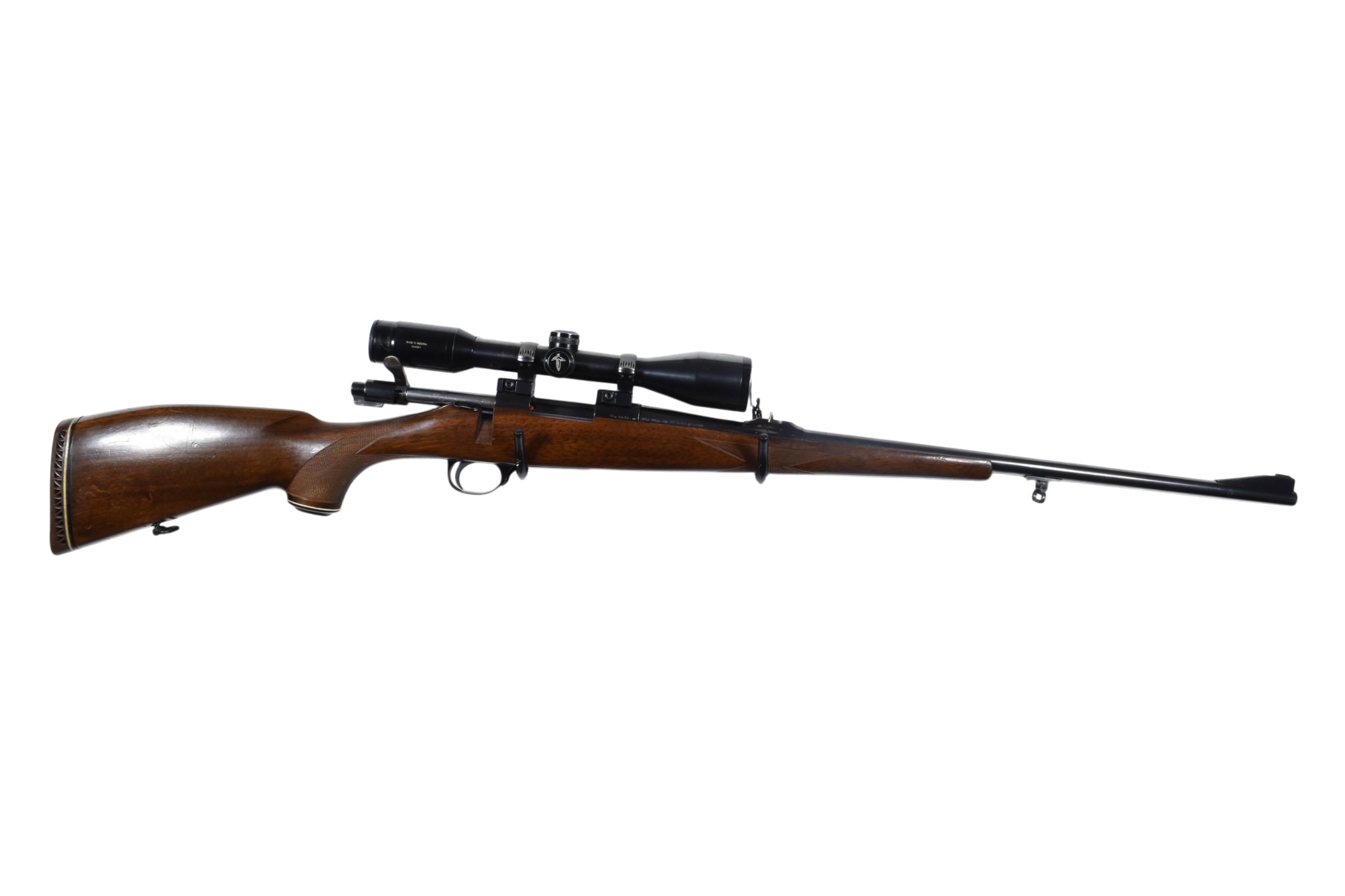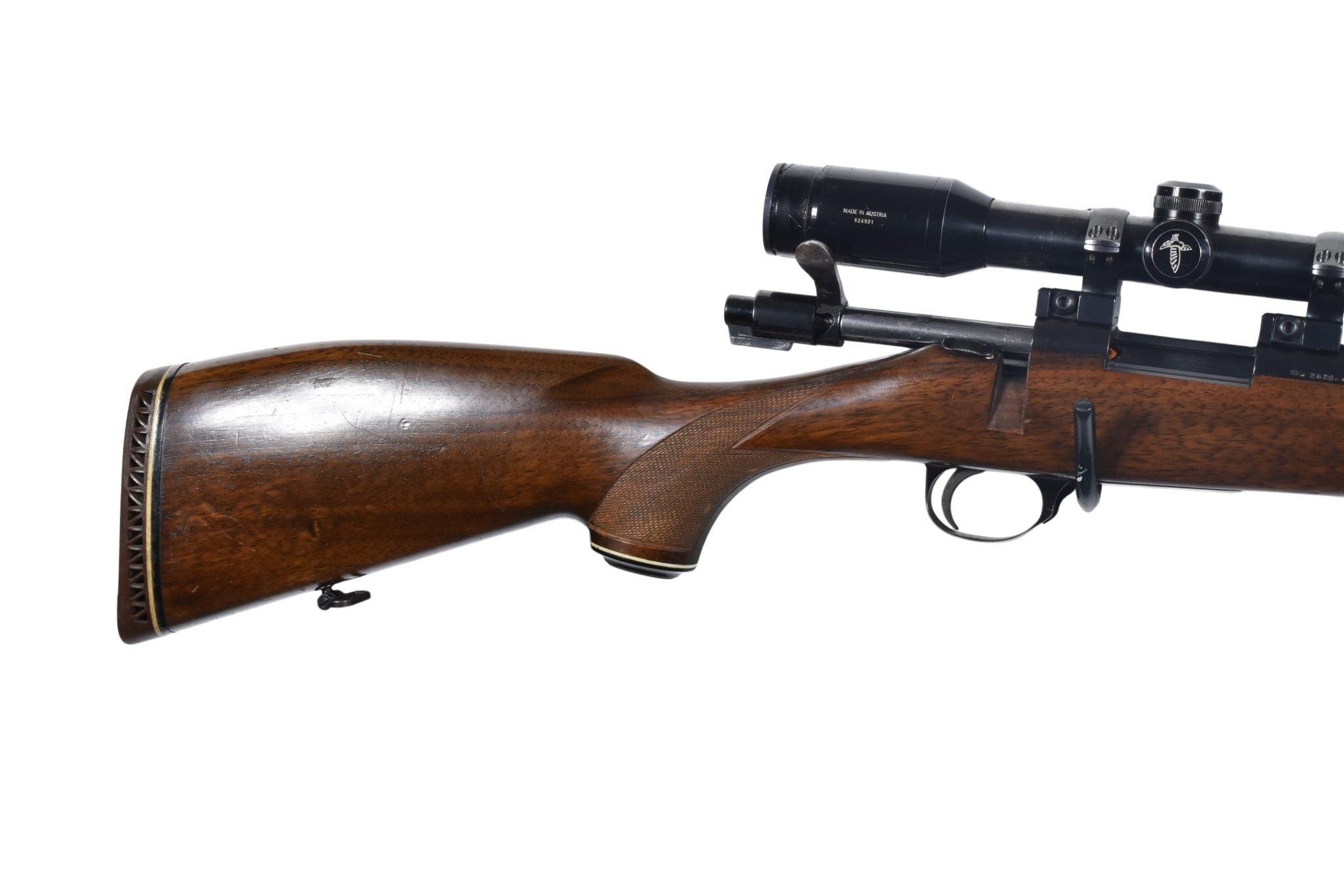 Diese Sako Repetierbüchse Modell Vixen im Kaliber .222 Remington verfügt über eine Gesamtlänge von 108 cm bei einer Lauflänge von 62 cm und einer Schaftlänge von 36 cm. Die Waffe ist mit einem Swarovski Habicht 6×42 Zielfernrohr mit Absehen 4 ausgestattet. Der Zustand wird mit 2-3 angegeben, was eine Einordnung zwischen normalen und etwas stärkeren Gebrauchsspuren darstellt. Es können mittelstarke Dellen am Schaft sowie Kratzer an der Brünierung vorhanden sein, bei insgesamt normaler Schussbelastung. Die Zustandsbeschreibung gilt als generelle Einschätzung, daher müssen nicht alle genannten Gebrauchsspuren zwingend in dieser Ausprägung vorhanden sein.