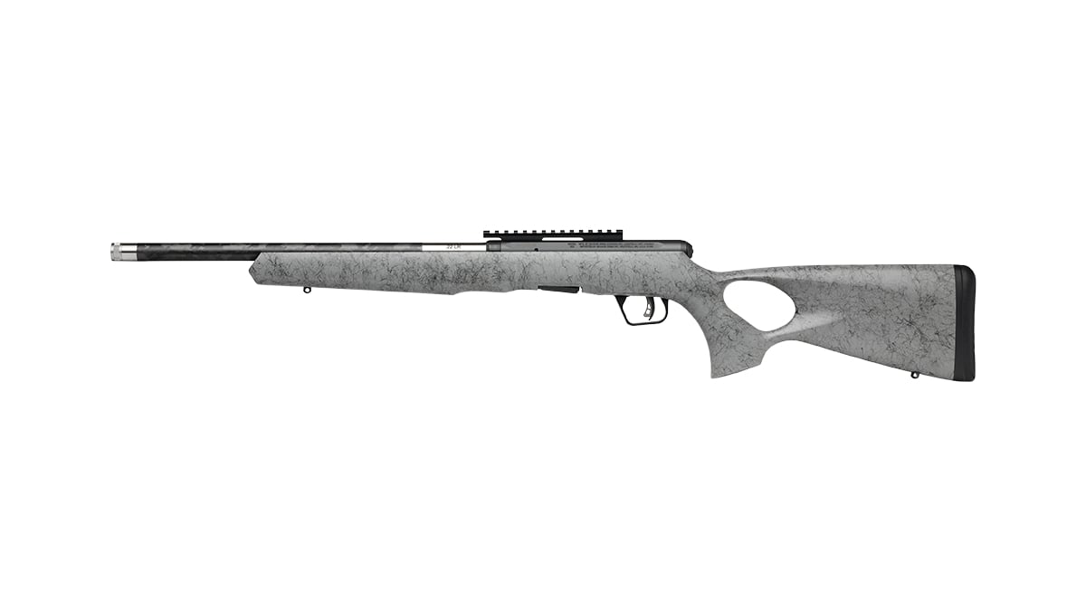 Die Savage B22 Timberlite Thumbhole vereint moderne Ingenieurskunst mit einem zeitlosen Designanspruch und richtet sich an anspruchsvolle Sportschützen sowie Jäger. Die auffällige graue Daumenloch-Schichtholzschaft mit schwarzem Spiderweb-Muster sticht nicht nur optisch hervor, sondern sorgt dank der ergonomischen Form für ausgezeichnete Kontrolle und komfortable Handhabung auch bei längeren Einsätzen. Der aus Karbonfaser ummantelte Edelstahl-Lauf bietet maximale Stabilität und Widerstandsfähigkeit bei gleichzeitig reduziertem Gewicht. Die Gewindemündung (1/2×28) inklusive Gewindeschutz erlaubt die einfache Montage eines Schalldämpfers oder anderer Mündungsaufsätze.