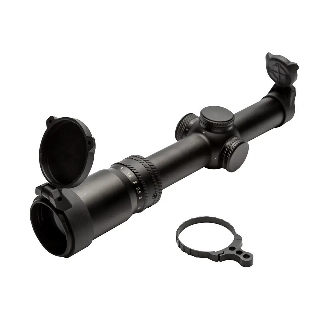 Zielfernrohr, Schutzkappen, Reinigungstuch, Benutzerhandbuch