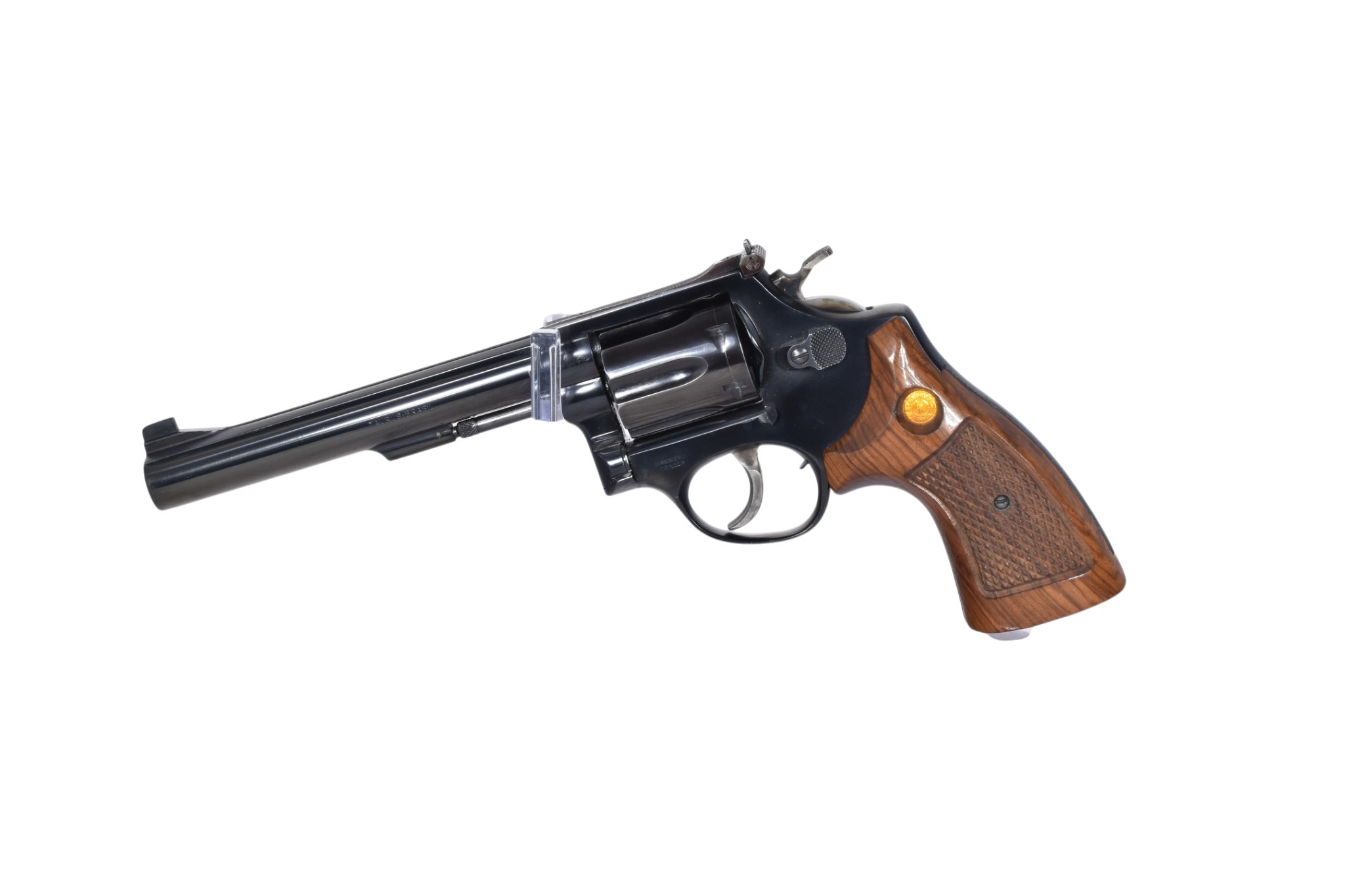 Dieser Taurus Revolver im Kaliber .22lr verfügt über eine Gesamtlänge von 31,5 cm und eine Lauflänge von 15,3 cm. Die Waffe befindet sich im Zustand 2, was normale Gebrauchsspuren sowie eine übliche Schussbelastung beschreibt. Es können leichte bis mittelstarke Dellen an den Griffschalen sowie kleinere Kratzer an der Brünierung vorhanden sein, insgesamt zeigt der Revolver typische Nutzungsspuren. Diese Zustandsbeschreibung gilt nur als generelle Einschätzung und es muss nicht jeder mögliche Verschleiß oder jede Nutzungsspur wie beschrieben vorhanden sein. Der Revolver verfügt über deutschen Beschuss aus dem Jahr 1987.