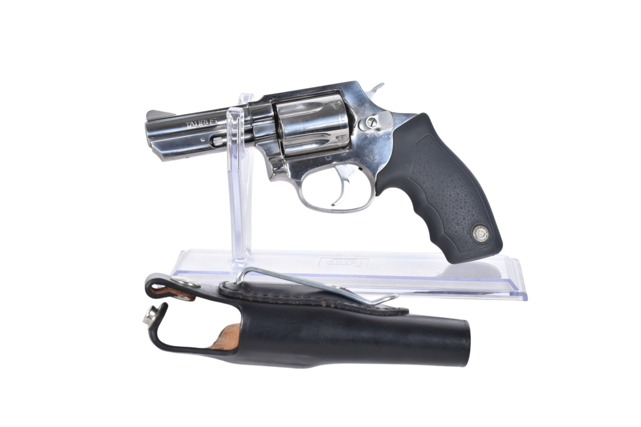 Dieser Taurus Revolver im Kaliber .357 Magnum verfügt über eine Gesamtlänge von 23 cm und eine Lauflänge von 3 Zoll. Der Revolver befindet sich im Zustand 1-2, was zwischen sehr leichten Gebrauchsspuren und einer sehr geringen bis leichten Schussbelastung einzuordnen ist. Es können minimale Gebrauchsspuren vorhanden sein, die insgesamt einen sehr gepflegten Eindruck hinterlassen. Diese Zustandsbeschreibung gilt als generelle Einschätzung und es ist möglich, dass nicht alle beschriebenen Merkmale vollständig zutreffen oder vereinzelt weitere Gebrauchsspuren vorhanden sind. Der Revolver verfügt über einen deutschen Beschuss aus April 1998.