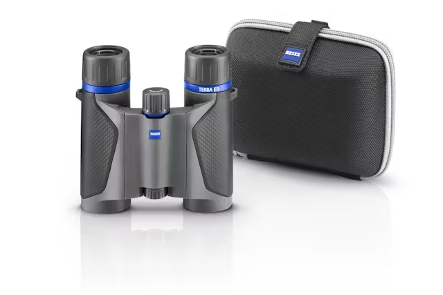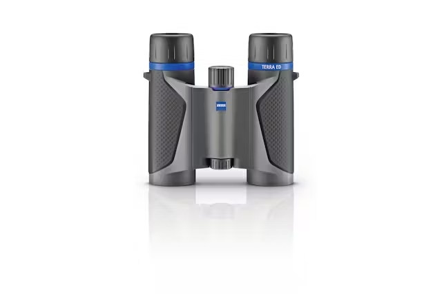 Das **ZEISS Terra ED Pocket 8×25** bietet eine 8-fache Vergrößerung und ermöglicht dank der sanften und exakten Fokussierung eine komfortable Bedienung in jeder Situation. Mit einer Funktionstemperatur von -20 bis +63 °C und dem wasserdichten Gehäuse bleibt dieses Fernglas selbst unter extremen Bedingungen ein zuverlässiger Begleiter. Durch das zusammenfaltbare Design und das geringe Gewicht von nur 310 g ist das ZEISS Terra ED Pocket 8×25 besonders kompakt und lässt sich einfach transportieren. Es ist das ideale Fernglas für alle, die bei geringem Gewicht den Überblick behalten wollen.